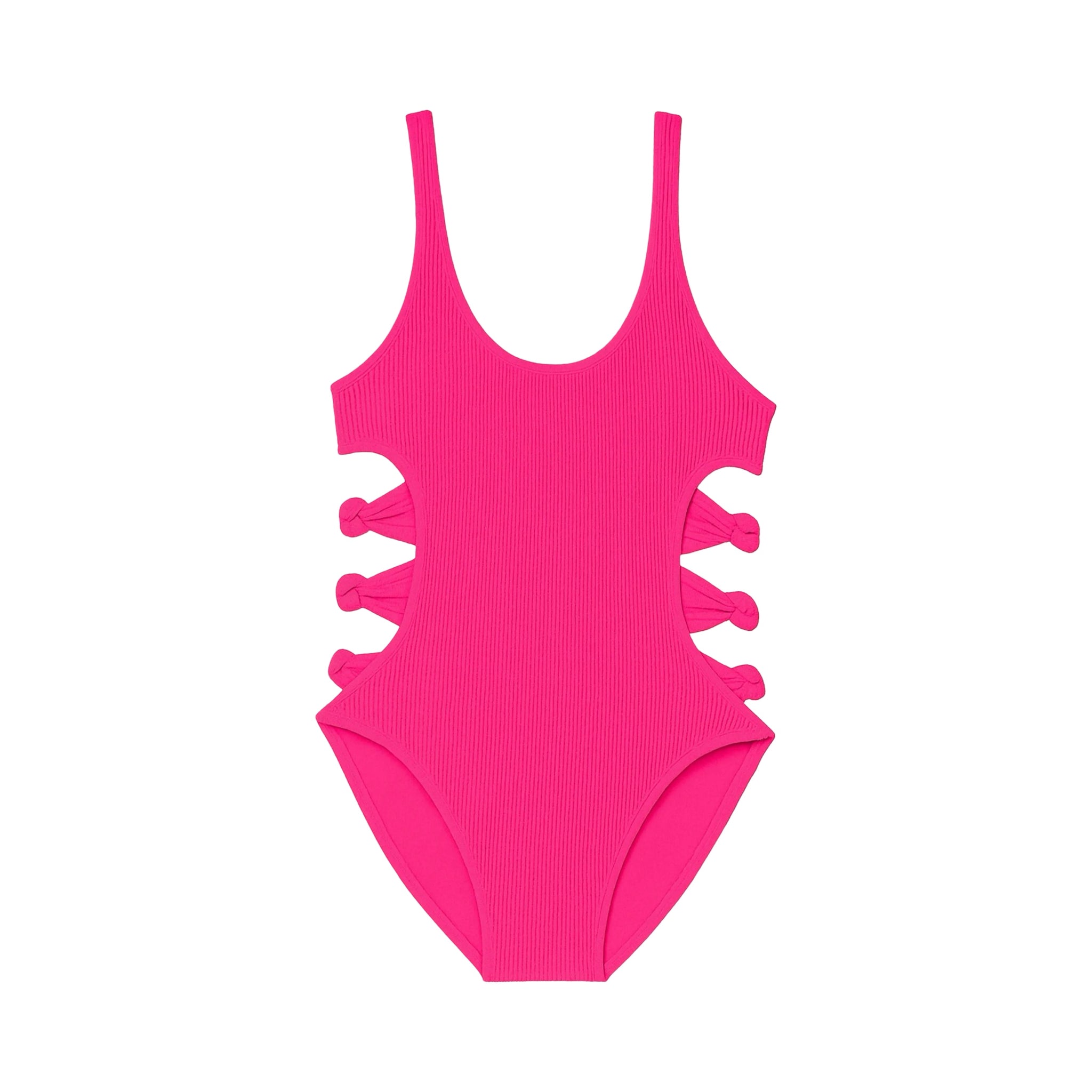 Make a splash with this hot pink fuchsia Layla playful one-piece swimsuit featuring a textured crinkle fabric, a low-scoop back, and charming side cutouts and bow detail. Crafted from our unique 4-way stretch crinkle fabric, this vibrant swimsuit hugs and flatters a variety of body shapes with its timeless design and fun details.