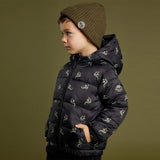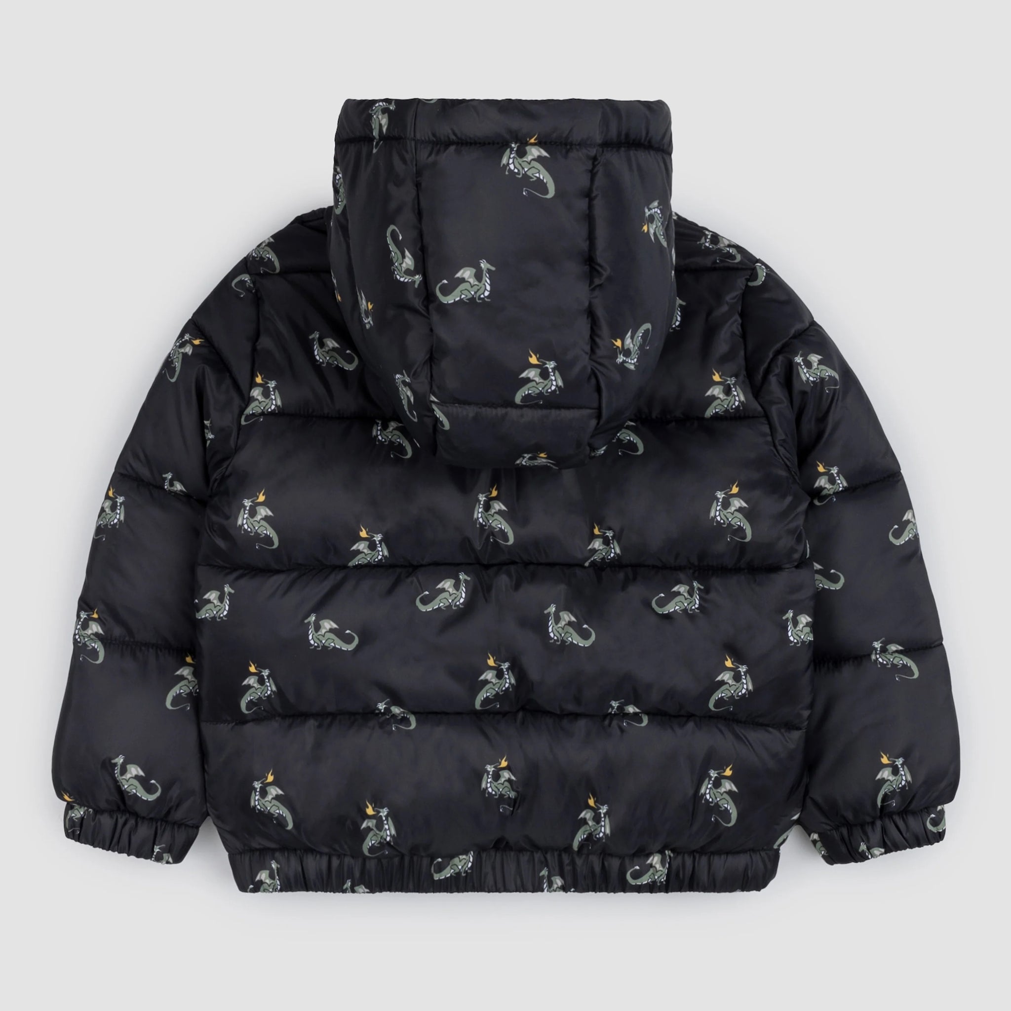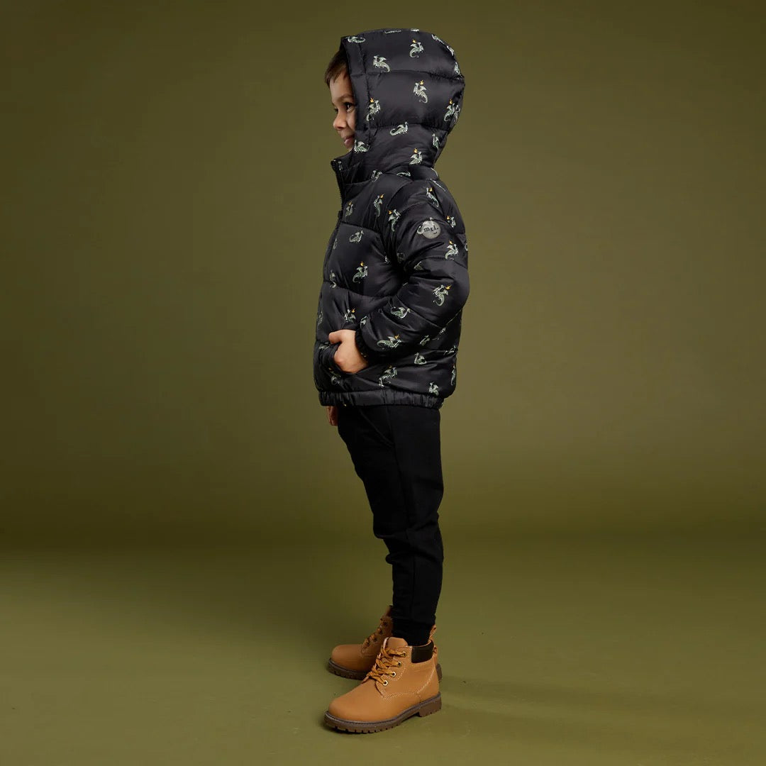Miles The Label - Dragon Print on Black Hooded Packable